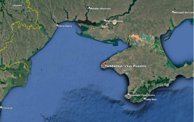 塔尔汉库特角位于克里米亚最西部,是俄罗斯先进防空系统的理想所在地。(谷歌地球图像)